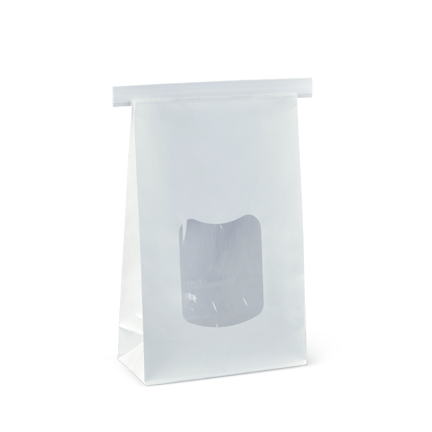 Retail window bags are poly-lined for freshness, and feature a window to showcase the contents. They're ideal for dry foods like coffee beans, loose leaf tea, biscuits, and nuts, and can be sealed with a bar heater. Polylining is 100% BPA-free. The large tin-tie bag can also be resealed with the tin-tie, and is offered in white.