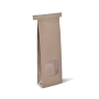 They include a tin-tie for easy resealing and a window for premium presentation of the products. The bags are brown, and are compostable. Please note that the tin-tie must be discarded prior to composting.