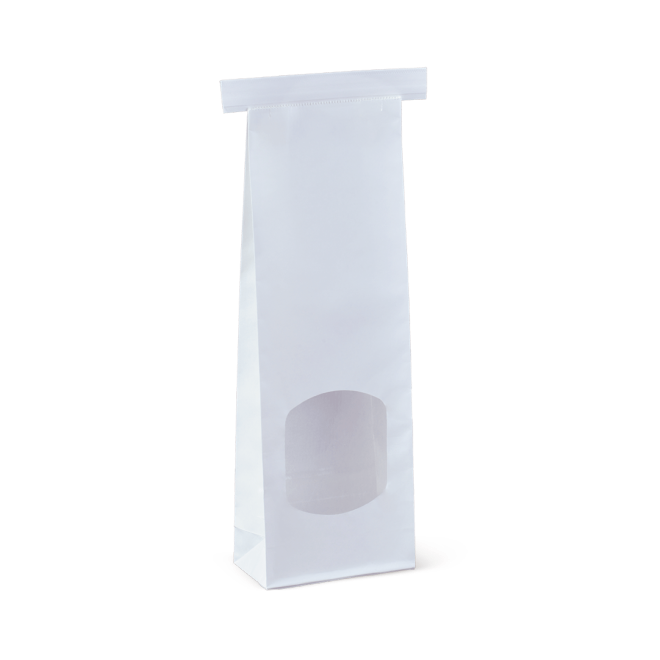 Retail window bags are poly-lined for freshness, and feature a window to showcase the contents. They're ideal for dry foods like coffee beans, loose leaf tea, biscuits, and nuts, and can be sealed with a bar heater. Polylining is 100% BPA-free. The small tin-tie bag can also be resealed with the tin-tie, and is offered in white.