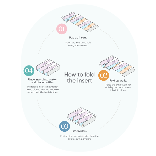 Compatible with the three and six bottle laydown cartons, and safely holds three bottles